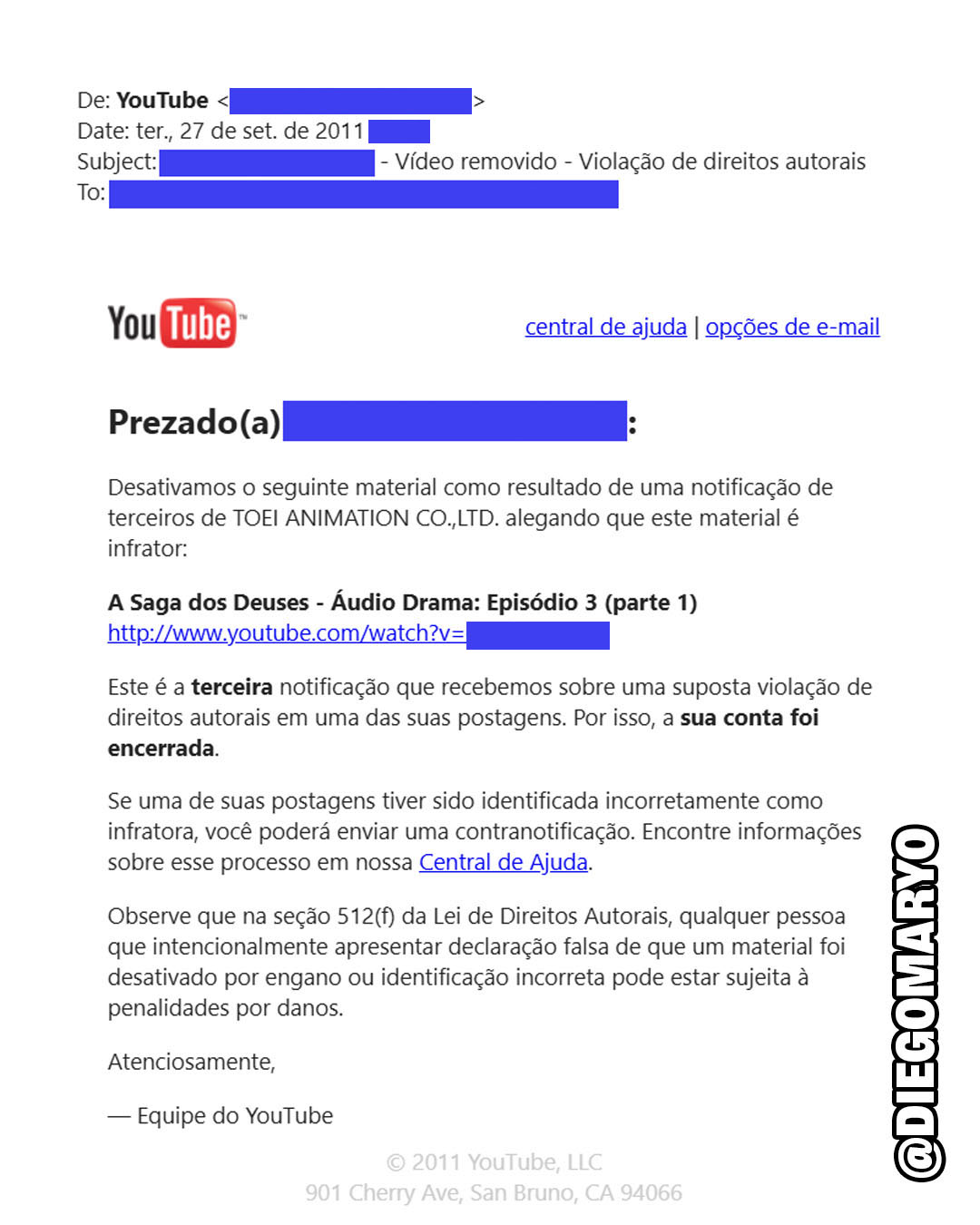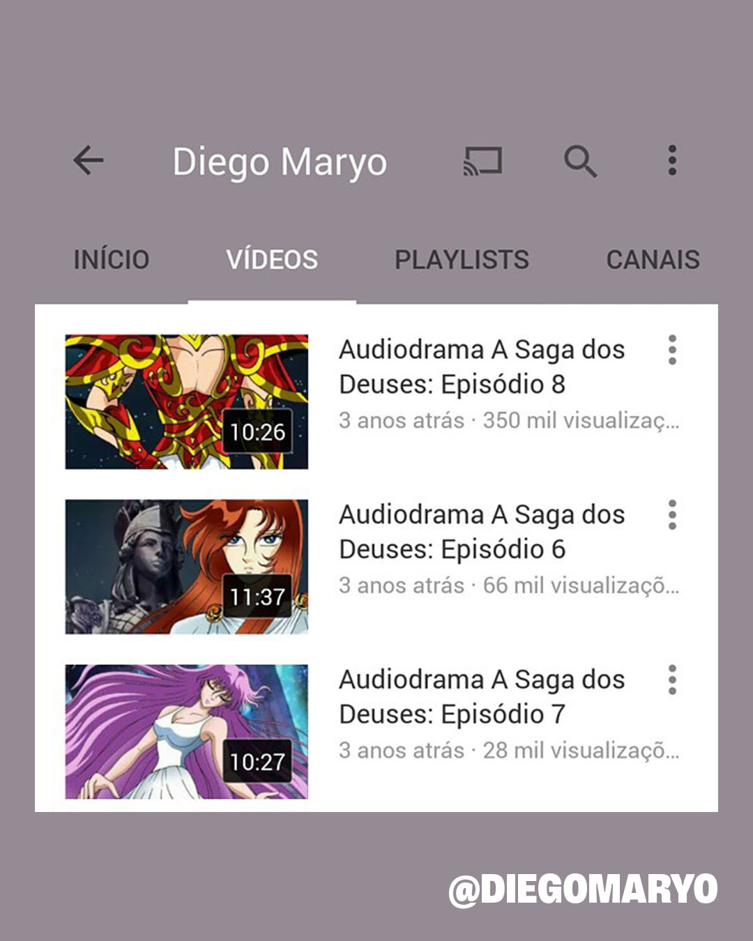 Esse não é o meu primeiro canal! Em meados de 2010, criei um não monetizado para compartilhar o Audiodrama “A Saga dos Deuses”, que contou com a participação de dez dubladores clássicos dos Cavaleiros do Zodíaco, algo jamais visto até os dias de hoje. Naquela época as políticas da plataforma eram diferentes e entenderam que o meu conteúdo, inspirado em Saint Seiya e 100% legal, pertencia a terceiros. O canal recebeu strikes e caiu.