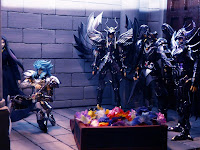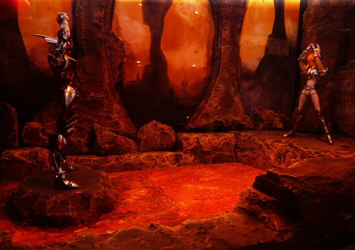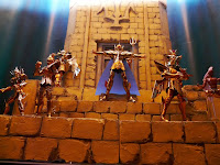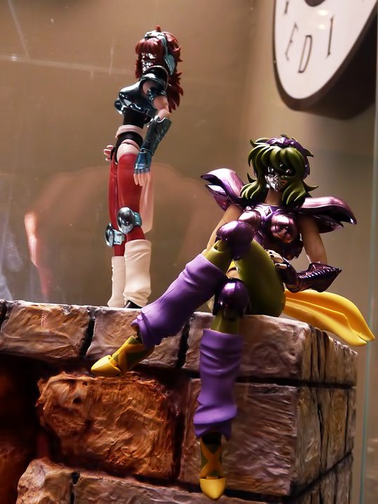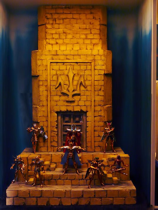 A exposição de Cloth Myths mostra os protótipos e bonecos já lançados dos 12 Cavaleiros de Ouro da linha Cloth Myth EX. Representantes da Toei Animation estiveram no local.