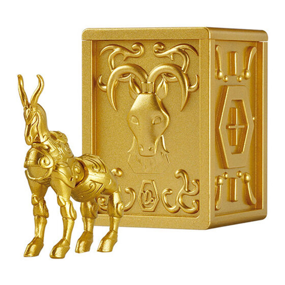 - Descrição: A popular armadura “Saint Seiya Cloth Myth EX” agora está disponível em miniatura com sua embalagem original. Surpreendentemente, a figura dentro da embalagem pode ser vista na parte de trás. É uma reprodução elaborada em tamanho miniatura!