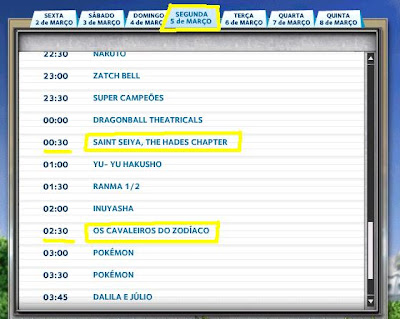 A saga de Hades estreiou dia 1º de março no canal pago, às 00:30 h. Os episódios antigos passam às 02:30 h.