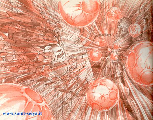 – Não ter pensamentos malignos? Isso é pelo cavaleiro Saga de Gêmeos, que tomará o lugar de Atena e governará o mundo. Eu apenas matei um marina, peguei sua escama…Já chega, essa é a técnica mais poderosa de Saga, Explosão Galáctica!!