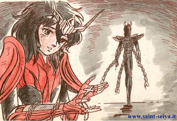 Seiya, que havia se separado de sua irmã, sua única parente neste mundo, que havia sido enviado como candidato a cavaleiro e forçado a um duríssimo treinamento, como se não valesse nada, e fosse um brinquedo jogado ao vento, odiava seu destino, e com todas as forças tratava de voltar toda sua impaciência e sua ira sobre Saori.